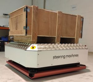 Steering Machines ha desarrollado un vehículo autónomo con ruedas convencionales, pero que cuenta con la ventaja de tener un movimiento omnidireccional, lo que mejora la flexibilidad y la libertad de circulación. Funciona en espacios reducidos y en espacios donde, además, haya personas o donde tenga que interactuar con otras máquinas sin tener que hacer maniobras, con la versatilidad con que lo haría una persona. La plataforma puede usarse en ingenierías de automatización, líneas automatizadas en fábricas o almacenes, como herramienta para optimizar el transporte de productos o materiales entre diferentes puntos de la instalación.