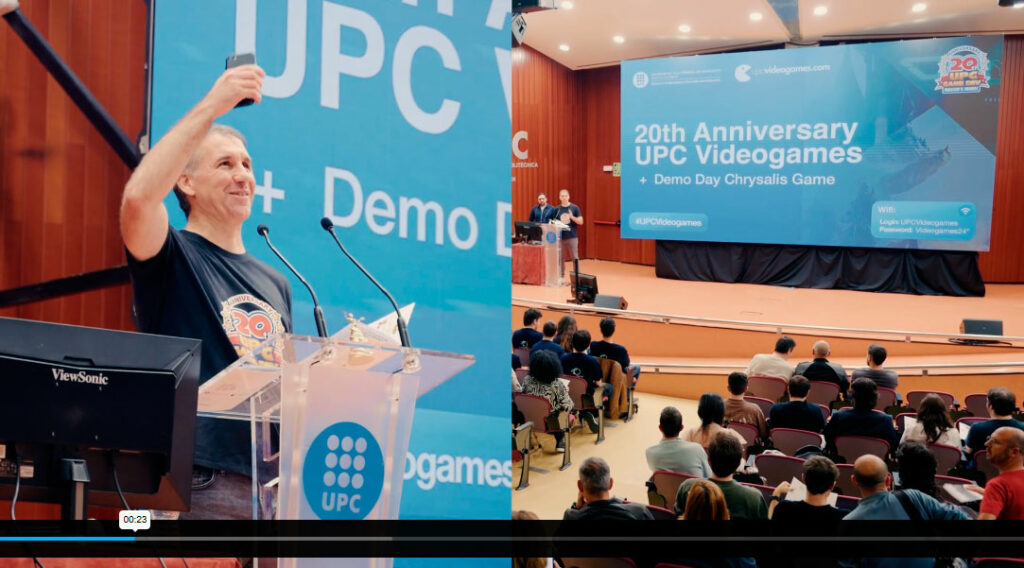 El passat divendres 8 de novembre, l’Auditori de l’Edifici Vèrtex del Campus Nord de la UPC va acollir un acte de celebració molt especial per a la UPC School: els 20 anys dels nostres màsters UPC Videogames: màster Advanced Programming for AAA Video Games i màster Animation & Digital Arts for AAA Video Games. Una jornada de retrobament per a tota la comunitat d’estudiants, professors i professionals vinculats al màster durant aquestes dues dècades.