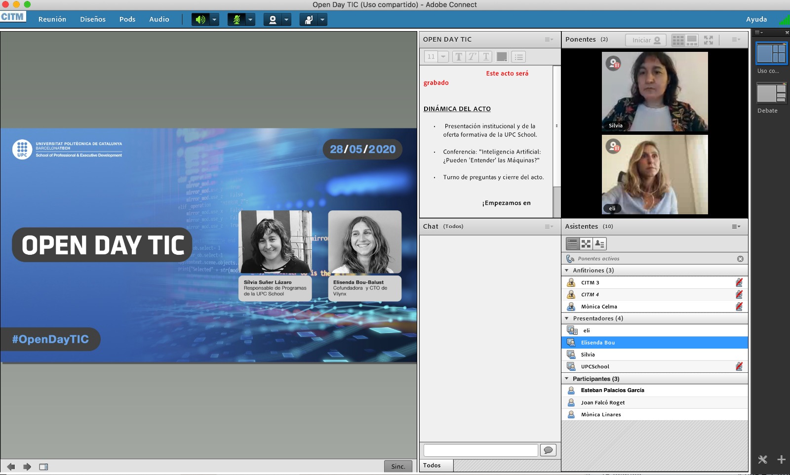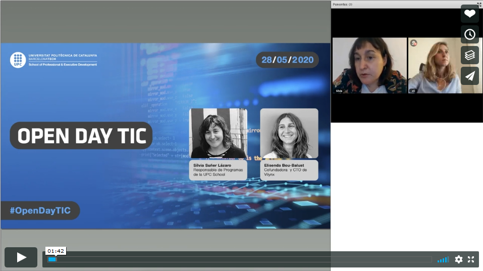 El pasado jueves 28 de mayo, 70 personas se conectaron de forma virtual en la segunda edición del Open Day TIC, una sesión para poner en común tendencias y retos del sector TIC y conocer las nuevas propuestas formativas de la UPC School en este ámbito.