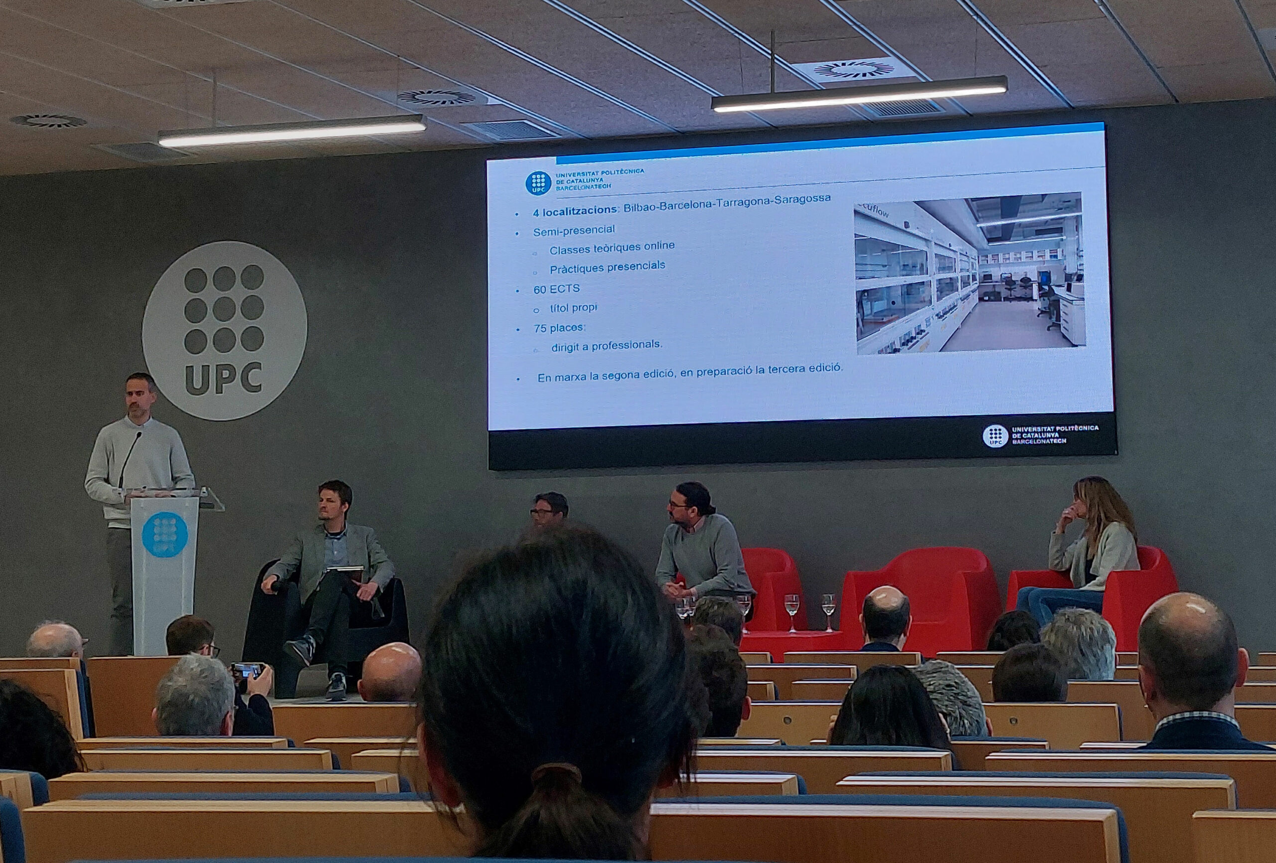 Una de les grans apostes institucionals per al desenvolupament efectiu a la indústria d’aquest vector és el màster interuniversitari en Tecnologies d’Hidrogen, que actualment es troba impartint la 2a edició amb 67 alumnes en 4 localitzacions. El màster es va presentar a la jornada de la mà d’un dels seus coordinadors acadèmics i investigador a la UPC, Lluís Soler. Aquest ha estat un màster pioner, dissenyat amb l’experiència en el camp tecnològic i energètic de Repsol-Petronor, i avalat per 5 universitats estatals: Mondragon Unibertsitatea, Universitat del País Basc/Euskal Herriko Unibertsitatea, Universitat Politècnica de Catalunya, Universitat Rovira i Virgili i la Universitat de Saragossa, juntament amb 6 centres formatius i de recerca més: el Centre Integrat de Formació Professional Somorrostro, l’Institut Comte de Rius de Tarragona, l’Institut Escola del Treball de Barcelona, el Centre Públic Integrat de Formació Professional Piràmide, l’Escola d’Organització Industrial i la Fundació Hidrogen d’Aragó.