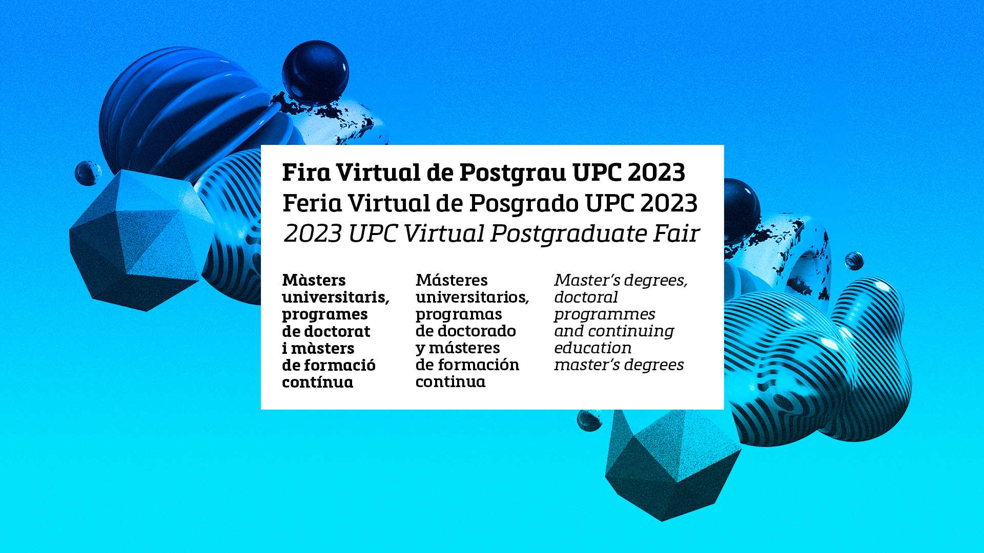 Del 17 al 28 d’abril, la UPC organitza la Fira Virtual de Postgrau UPC, una fira en format ‘online’ en què s’informarà de l’àmplia oferta d’estudis de postgrau de la Universitat: màsters universitaris, programes de doctorat i màsters de formació contínua.
